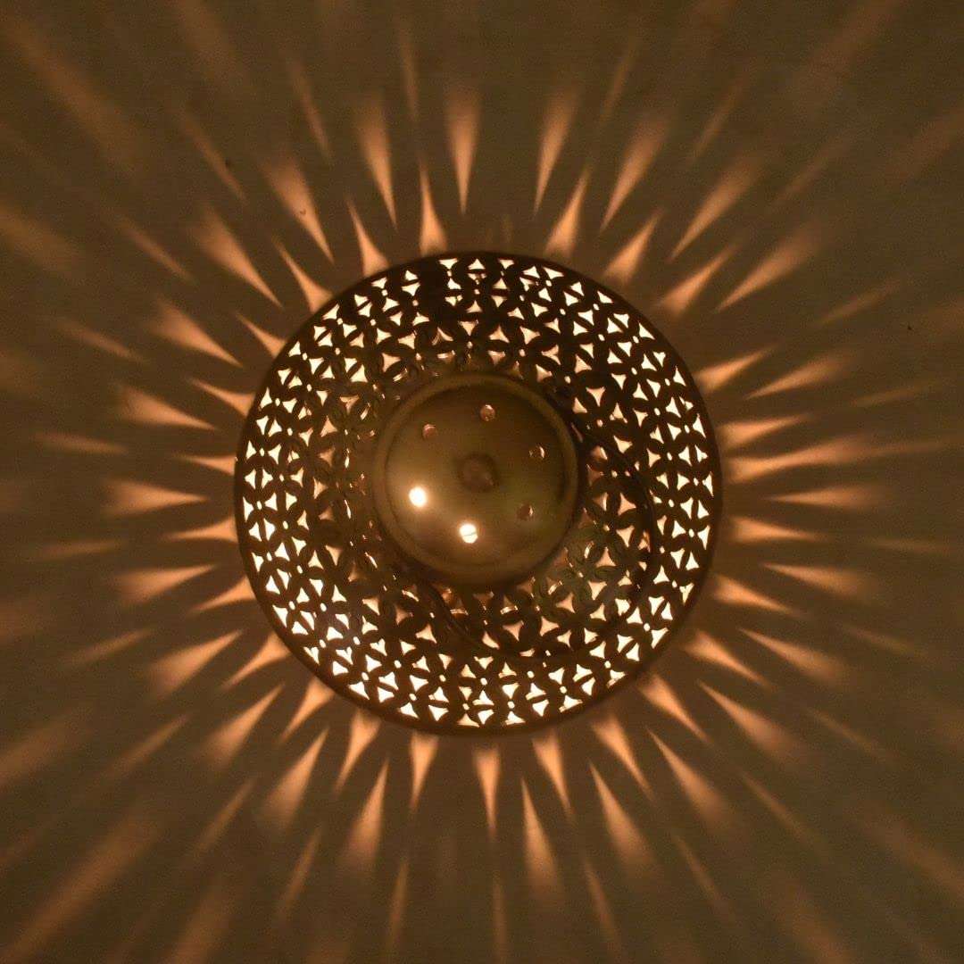 This decorative brass incense burner features a simple and elegant design. The burner has a small opening at the top for the incense stick and a wider base to catch ashes. Smoke gently flows from the opening, creating a calming and fragrant atmosphere.